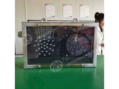 KXB12矿用本安型声光报警箱外壳上方有悬挂吊鼻,发光二极管为双色警示灯、双路输出,报警箱能发出红、绿两种颜色的光信号并伴有相应的警示语。