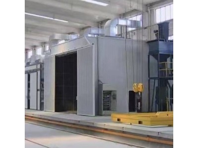 自动喷砂房作为*效表面处理设备,通过机械自动化系统实现喷砂作业的全流程控制。其核心原理包括四部分:工件经输送设备(如辊道、悬挂链)送入指定位置,自动化喷砂机构(固定喷枪或机械臂)按预设程序将磨料(石英砂、钢丸等)以高速气流喷射至工件表面,利用冲击力完成除锈、去氧化皮或表面强化;喷砂后磨料通过螺旋输送机、气力回收装置收集,经筛分、磁选分离杂质后循环使用;同时负压除尘系统(布袋或滤筒除尘器)净化粉尘,**达标排放。该设备广泛应用于汽车制造(车架、轮毂预处理)、工程机械(挖掘机结构件强化)、船舶工业(船体钢板除锈)及轨道交通(火车车厢表面处理)等领域,可显著提升批量处理效率与表面质量一致性。
